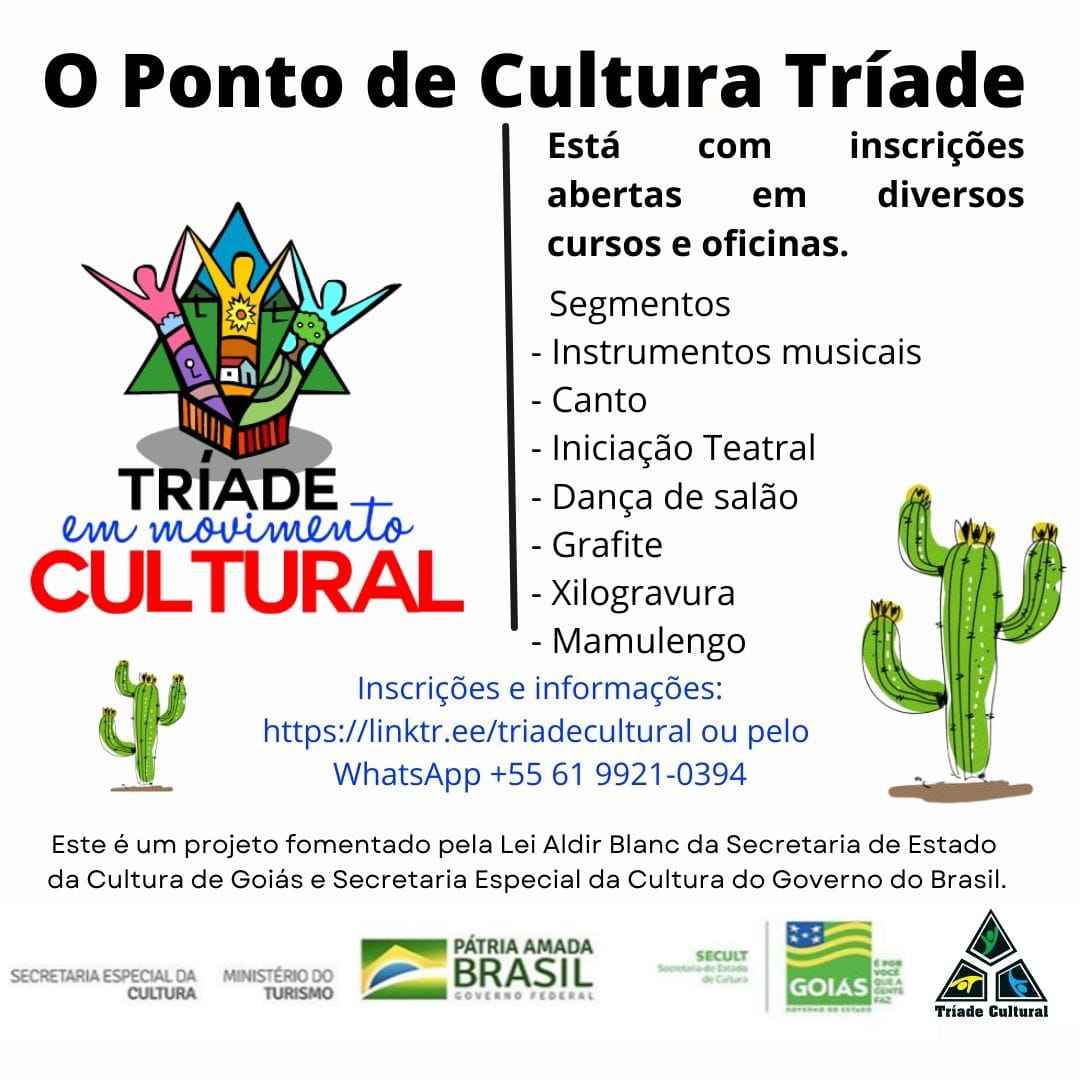 Para maiores informações temos o e-mail: triadecultural@gmail.com ou pelo WhatsApp +55 61 9921-0394